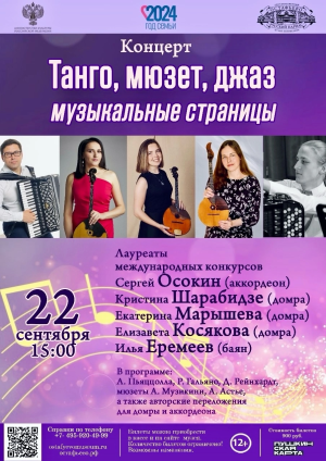 "Танго, мюзет, джаз. Музыкальные страницы"Музей-усадьба "Остафьево"22 сентября 2024, 15.00 |